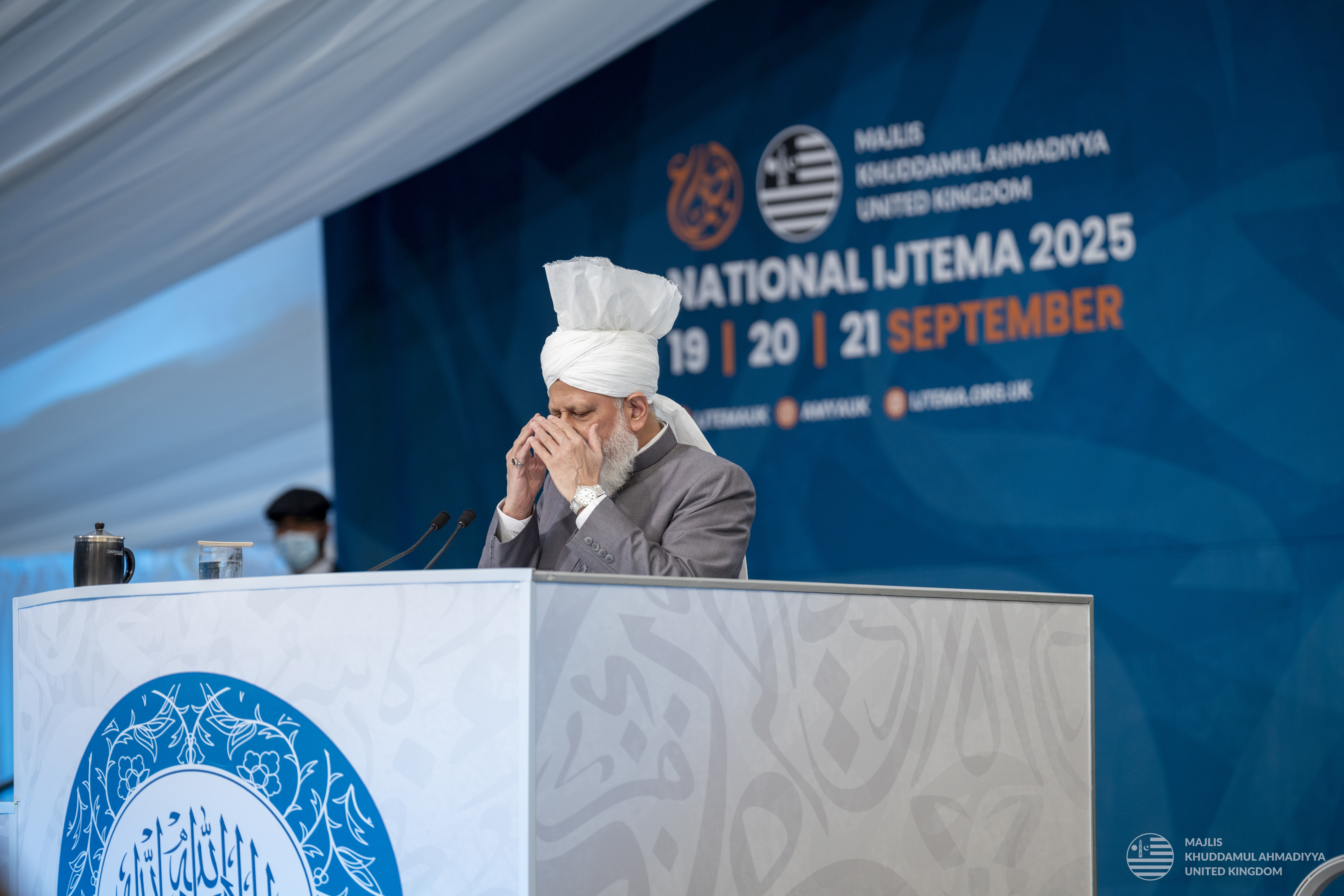 Huzoor (aba) leading Silent Prayer after opening the Store.
